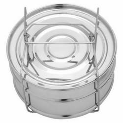 - Before cooking:- After washing keep ingredients in separators, add sufficient water. Stack the separator on the stand. Close the wire handle around stacked separators and lock it. Pour the required quantity of water in bottom of the cooker. Close pressure cooker.