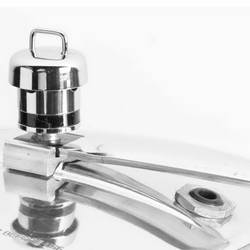 - It's safety valve is placed under the lid handle bar so that when it operates the steam is safely deflected downwards.