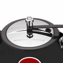 - It's safety valve is placed under the lid handle bar so that when it operates the steam is safely deflected downwards.