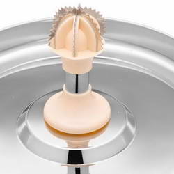 - After removing the steel drum, place the collection tray on the base. Then fix the coconut scrapper.