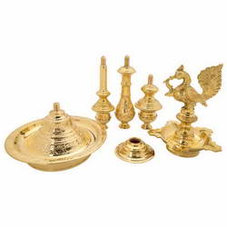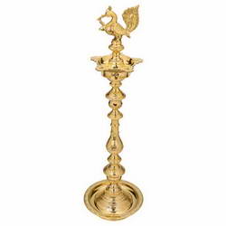 - This Vilakku is adorned with peacock idol on top.