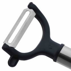 - This Peeler's serrated blade quickly peels soft skinned fruits and vegetables.