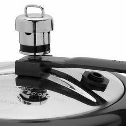 - It's safety valve is placed under the lid handle bar so that when it operates the steam is safely deflected downwards.