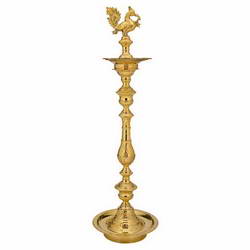 - This Vilakku is adorned with peacock idol on top.