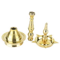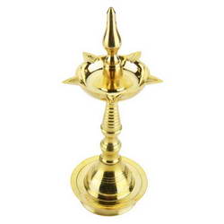 - This Vilakku is adorned with stem idol on top.