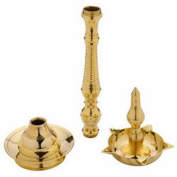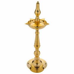 - This Vilakku is adorned with stem idol on top.