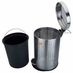 - It's outer bin has well fitting lid which keeps the garbage covered.