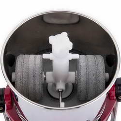 - Top nut use: Place the top nut with spring assembly and fix it by tightening two roatation. Pour a cup of water in the drum. Press ON switch to start the grinder. Put the grinding medium in small quantities with aqequate water. After 5 minutes tighten the top nut fully and place the glass lid.