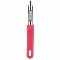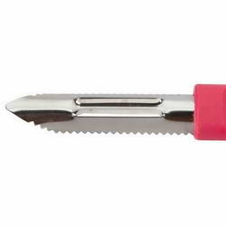 - This Peeler has serrated blade quickly peels soft skinned fruits and vegetables.