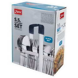 - This Cutlery set has 24 pieces which include 6 tea spoons, 6 dessert spoons, 6 dessert forks, 6 baby soup spoons.