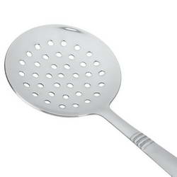 - It's perforated design facilitates oil pass through while preserving large solids on top.