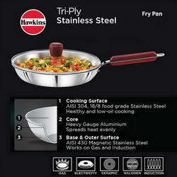 Hawkins is a renowned name for it's quality products. With best manufacturing practice and strict quality control since 1959, Hawkins has sold over 69 million units of pressure cookers and cookware by producing products of good design, good quality and considerable consumer benefit. It is an integral part of every household. TRI-PLY is a beautiful combination of best performance and best looks.