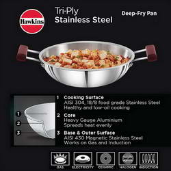 Hawkins is a renowned name for it's quality products. With best manufacturing practice and strict quality control since 1959, Hawkins has sold over 69 million units of pressure cookers and cookware by producing products of good design, good quality and considerable consumer benefit. It is an integral part of every household. TRI-PLY is a beautiful combination of best performance and best looks.