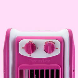 - It has two rotary switches, one for 3-speed adjustment and the other for on, off and swing operation.
