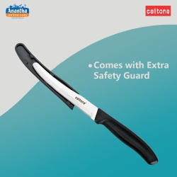 Celltone's round knife is made from high-quality blades for precision and accuracy. Constructed for perfect stability and control. This knife from Cellotone is used for cutting vegetables, fruits, bread, finely chopping herbs, crushing peppercorns, and pe