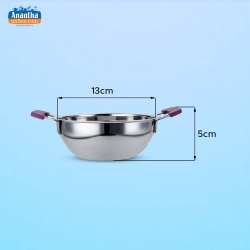 The tiny and adaptable baby kadai is a cooking tool made for a range of culinary applications. Because it is made of sturdy materials, it is a practical option for regular cooking. Using this kadai guarantees the user's safety and comfort.