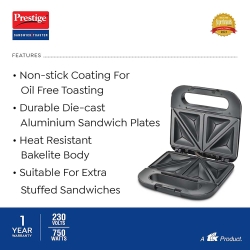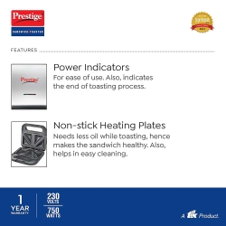 - Its nonstick coated sandwich plates ensure minimal use of butter, which helps in healthy cooking.