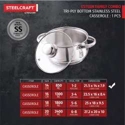 Stainless steel casserole for safe and versatile cooking. Made using food-safe stainless steel that is sturdy and durable. Being scratch and chip-resistant and non-corrosive makes it an ideal choice for everyday use.