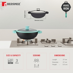 The bergner triply stainless steel honeycomb kadai is a sturdy and adaptable cooking tool. Even heat distribution is aided by the surface's honeycomb pattern. It works well with a variety of cooking techniques and is frequently praised for both its effectiveness and quality.
