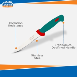 - this knife is ideal for cutting fruits, vegetables, breads etc.