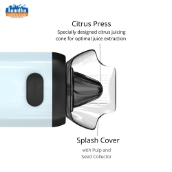 - Splash cover with pulp and seed collector making it easier to prepare fresh juice.